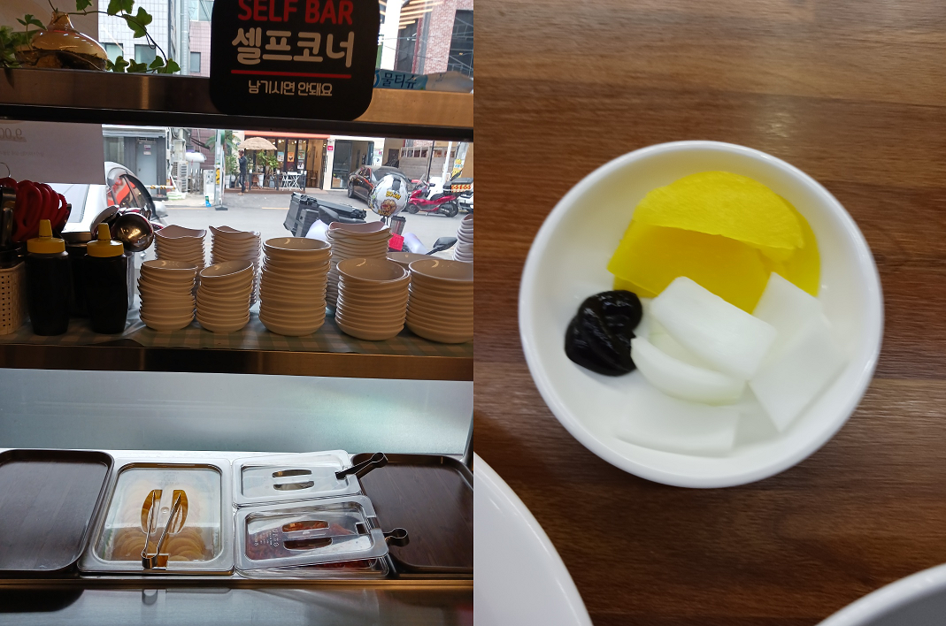 셀프바가 있어서 양파와 단무지를 가져왔습니다.